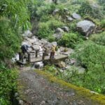 Unser Ziel waren die natürlichen heißen Quellen von Tatapani. Vom Zentrum in Bir ging es mit dem Auto etwa eine Stunde Richtung Nord-Westen. Von dort startete unsere 1,5-stündige Wanderung zu den Quellen – und zwar im strömenden Regen! Die nassen Kleider waren aber schnell vergessen.